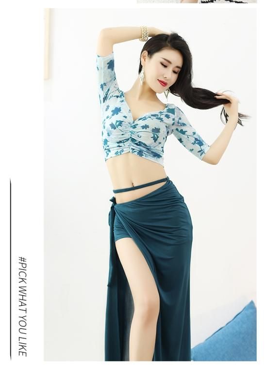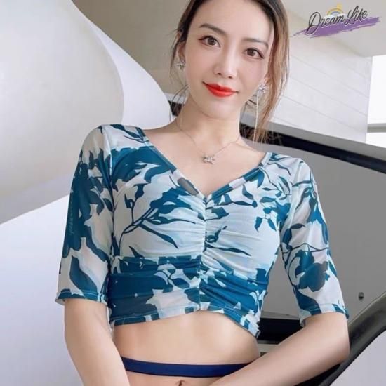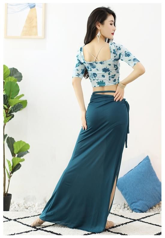 レッスンウエア シースルー素材プリント柄トップス&巻きスカート 全2色 lw1946
