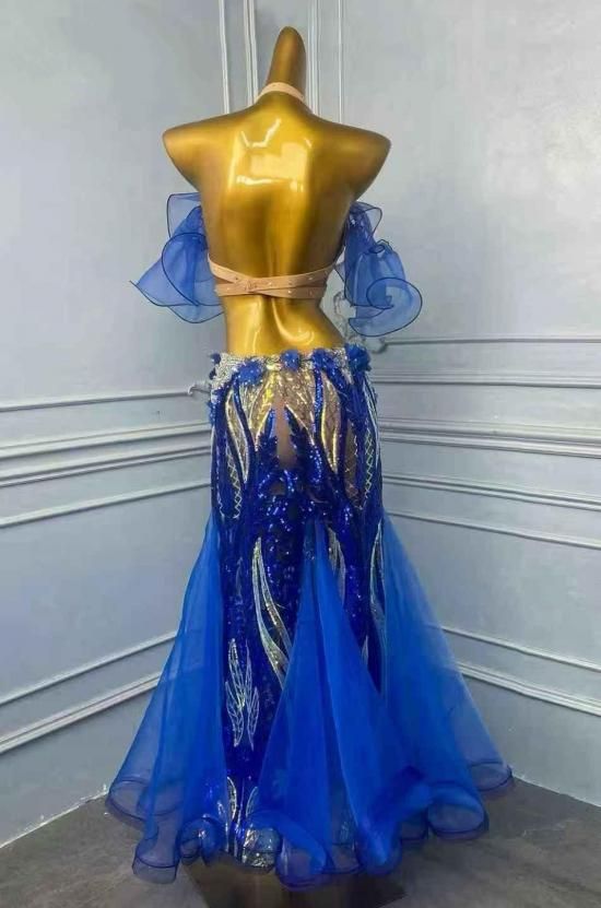 オリエンタル衣装 フリルスリープデザインブラ&マーメイドスカート ロイヤルプル lw2787