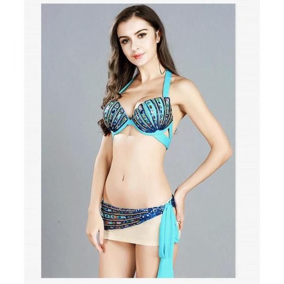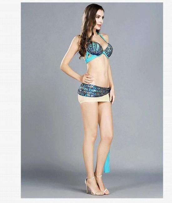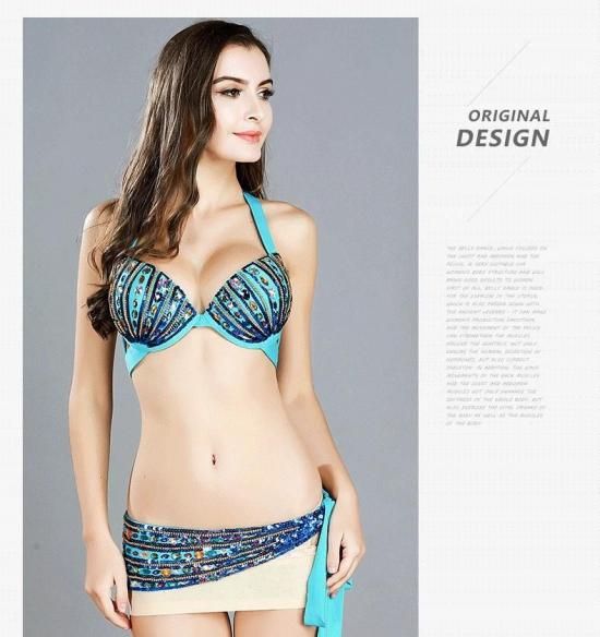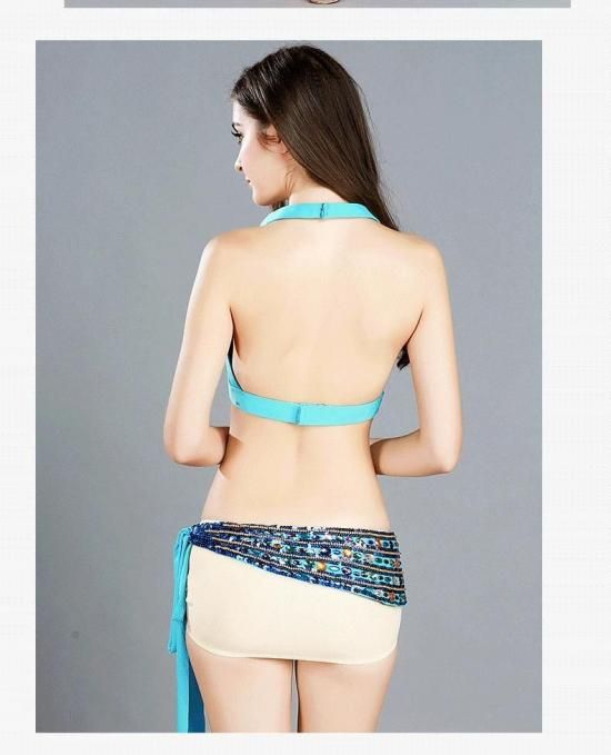 ベリーダンス衣装 ブラ、ベルト2点セット ターコイズブルー br2789