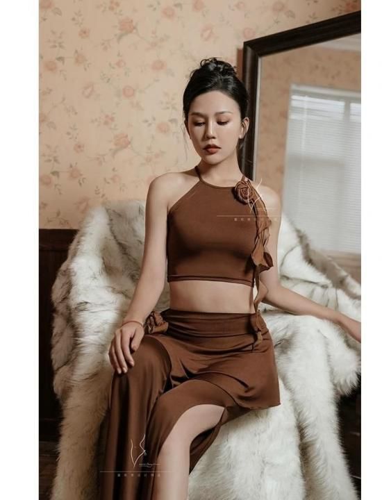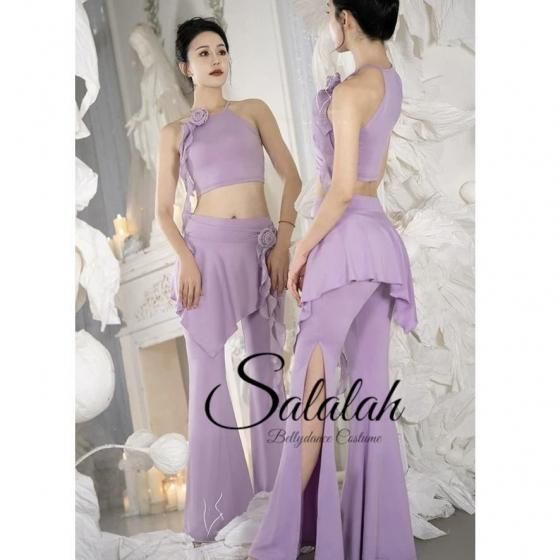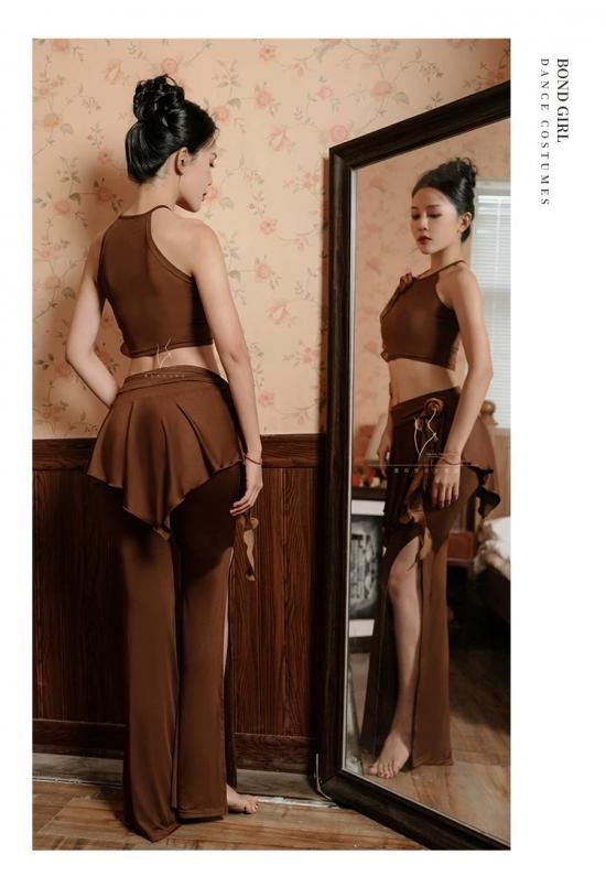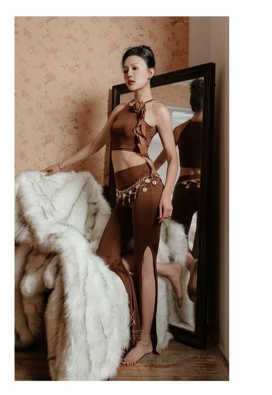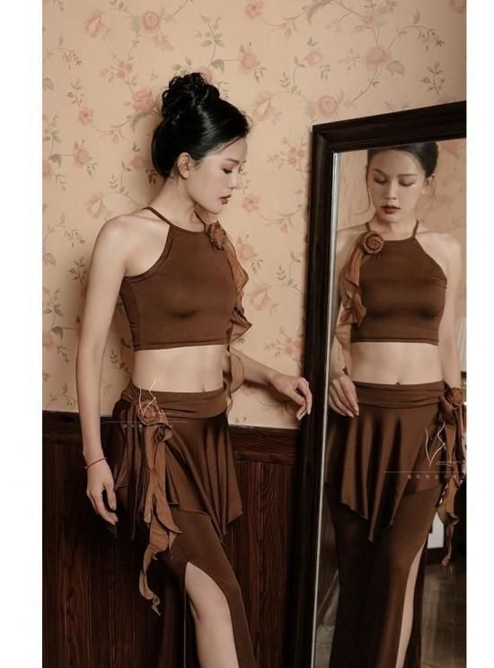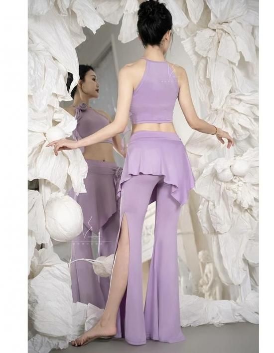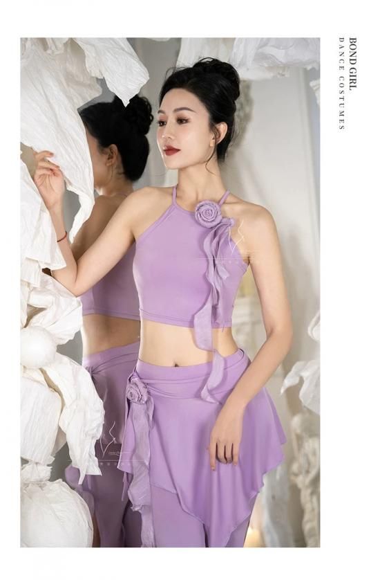 レッスンウエア フラワーコサージュ付きキャミトップ&ヒップスカーフ型フレアパンツ 2色展開 lw2802