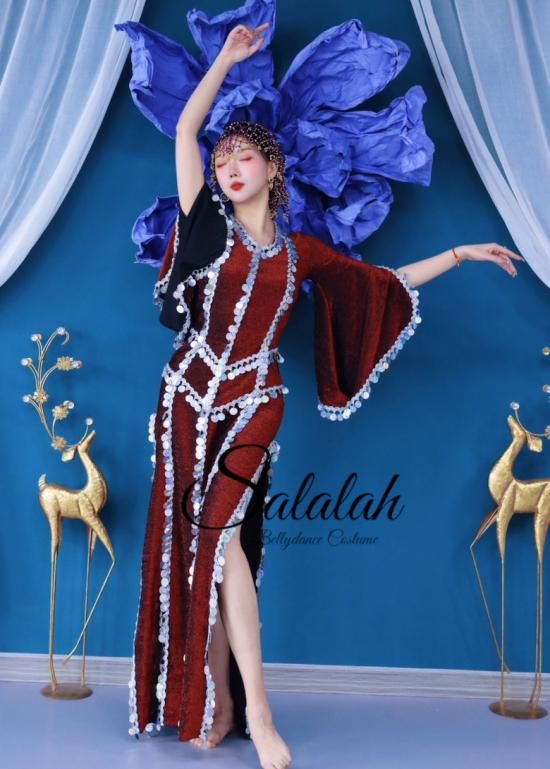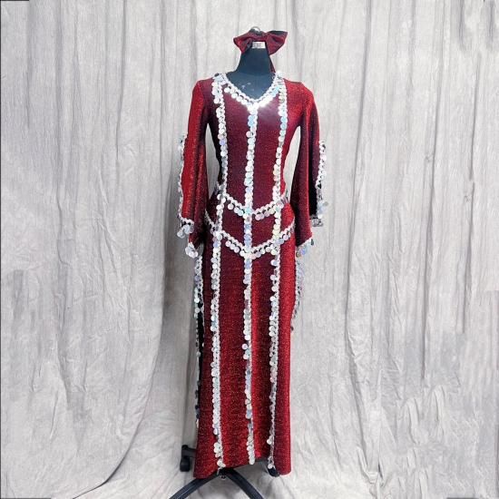 baladi shaabi saidi ドレス スパンコール装飾 ワインレッド&シルバー lw2805