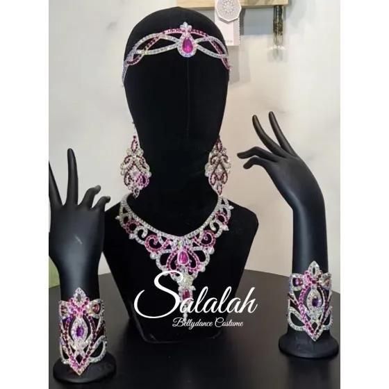 ハンドメイドラインストーンアクセサリー ネックレス/ヘッド/ピアス/ネックレス/アームセット2個 ピンク&シルバー lw2780