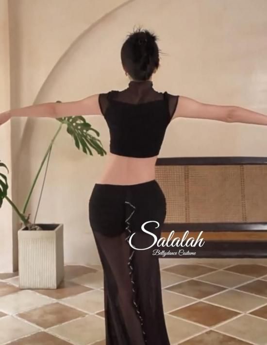 レッスンウエア シースルー素材ハイネックトップス&バックフリルマーメイドデザインスカート ブラック lw2800